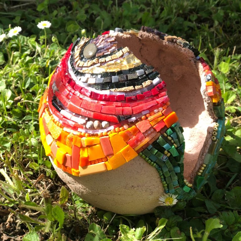 À 30 ans, j’ai ressenti un besoin profond de changement : quitter les tubes à essai des laboratoires pour me reconnecter à ma créativité et donner un nouveau sens à ma vie professionnelle. Animée par une envie viscérale de créer de mes mains, je souhaitais intégrer l’École Internationale de Mosaïque de Spilimbergo (Italie). Mais la limite d’âge étant dépassée, cette voie directe m’était fermée.